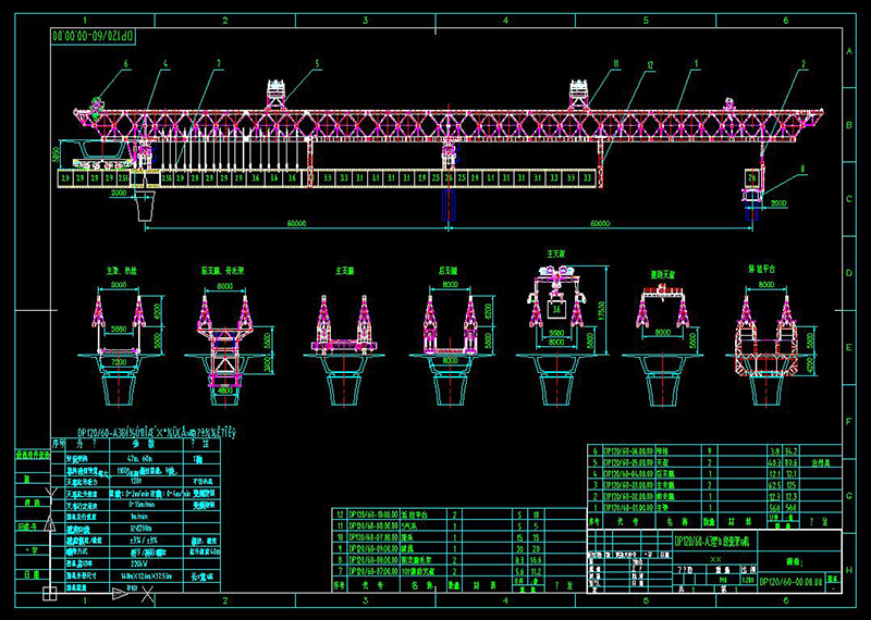 節(jié)段拼裝式架橋機(jī)多用于大跨度公路大橋節(jié)段箱梁架設(shè),能滿足橋梁上坡下坡及斜交安裝施工的需要,確保橋梁安裝質(zhì)量及安全施工。架橋機(jī)即可完成節(jié)段預(yù)應(yīng)力混凝土梁段對(duì)稱懸拼,也可完成小邊跨整橋梁的吊裝架設(shè)。架橋機(jī)除提供從尾部橋面喂梁的功能外,還提供橋下喂梁的功能。架橋機(jī)一般由主桁結(jié)構(gòu)、支撐結(jié)構(gòu)及起重機(jī)三大部件構(gòu)成,整機(jī)由電液組合驅(qū)動(dòng)。