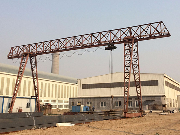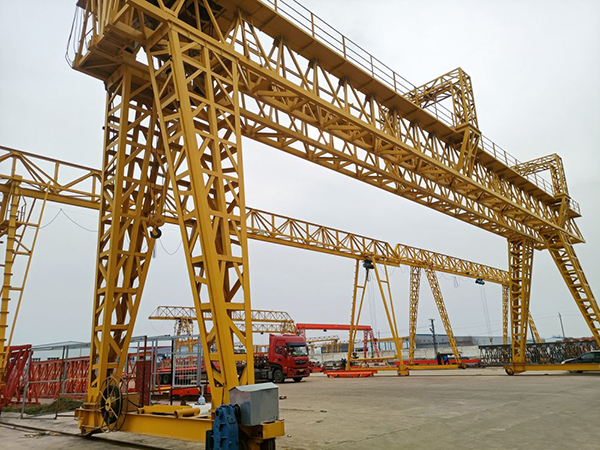 門式起重機是橋式起重機的一種變形,又叫龍門吊。門式起重機具有場地利用率高、作業(yè)范圍大、適應(yīng)面廣、通用強等特點,它的金屬結(jié)構(gòu)像門形框架,承載主梁下安裝兩條支腳,可以直接在地面的軌道上行走,主梁兩端可以具有外伸懸臂梁。